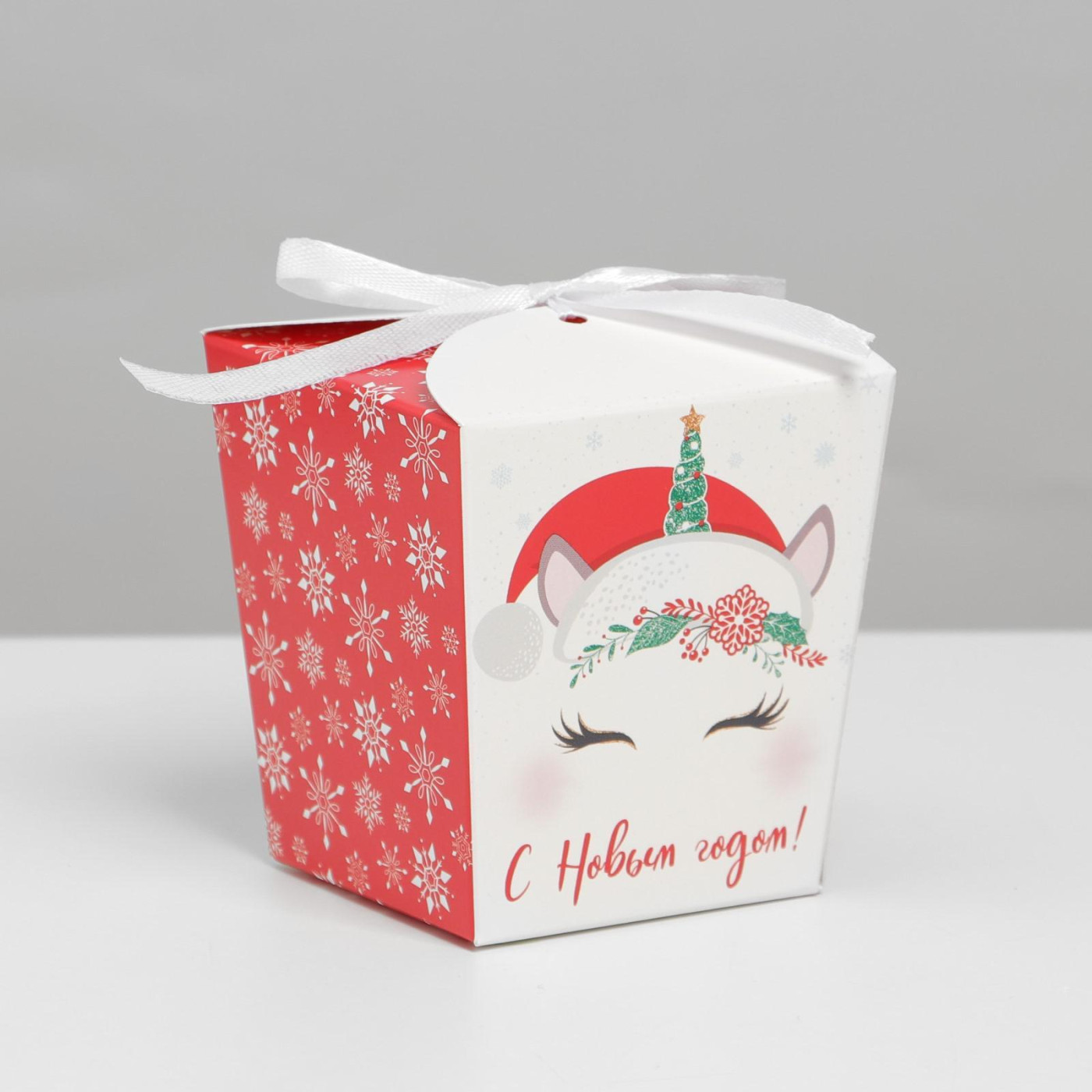 Бонбоньерка складная «Единорожка», 7,5*8*7,5см Красный/белый