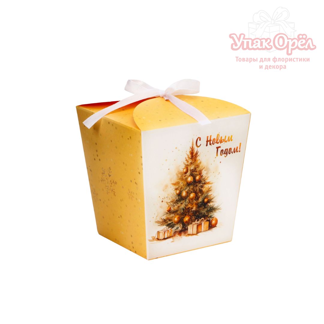 Коробка складная Бонбоньерка «Счастливого Нового года», елка, 7,5*8*7,5см Золото