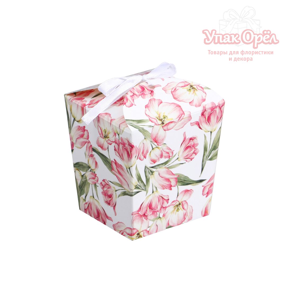 Коробка складная Бонбоньерка «Тюльпаны», 7,5*8*7,5см, Белый