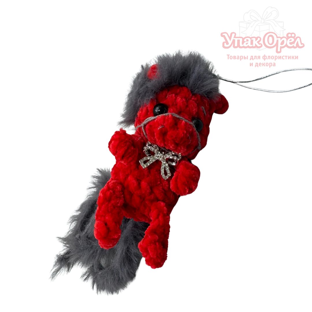 Брелок вязаный НГ Символ Года Лошадь, 10 см, красный