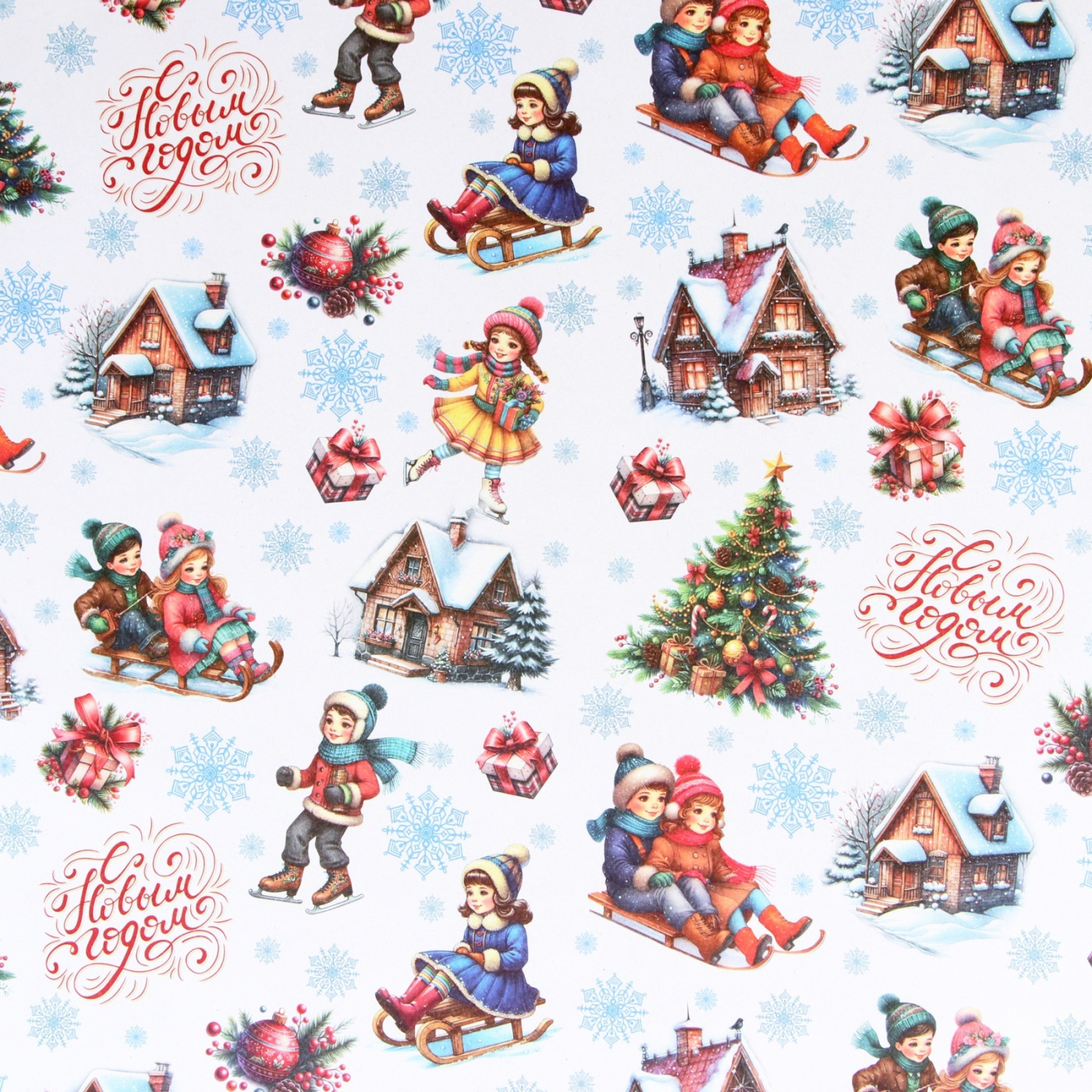 Бумага упаковочная для подарка "Настроение", дети, домик, 1 лист 70см*100см