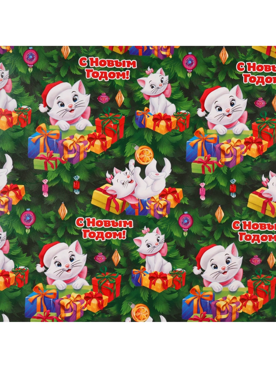 Бумага упаковочная для подарка "С Новым годом", кошечка, 1 лист 70см*100см Зеленый