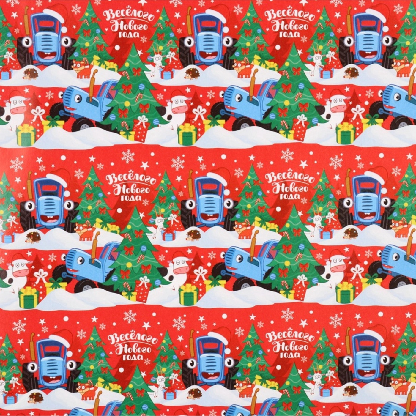 Бумага упаковочная для подарка "Веселого Нового года", трактор, ёлка, 1 лист 70см*100см Красный