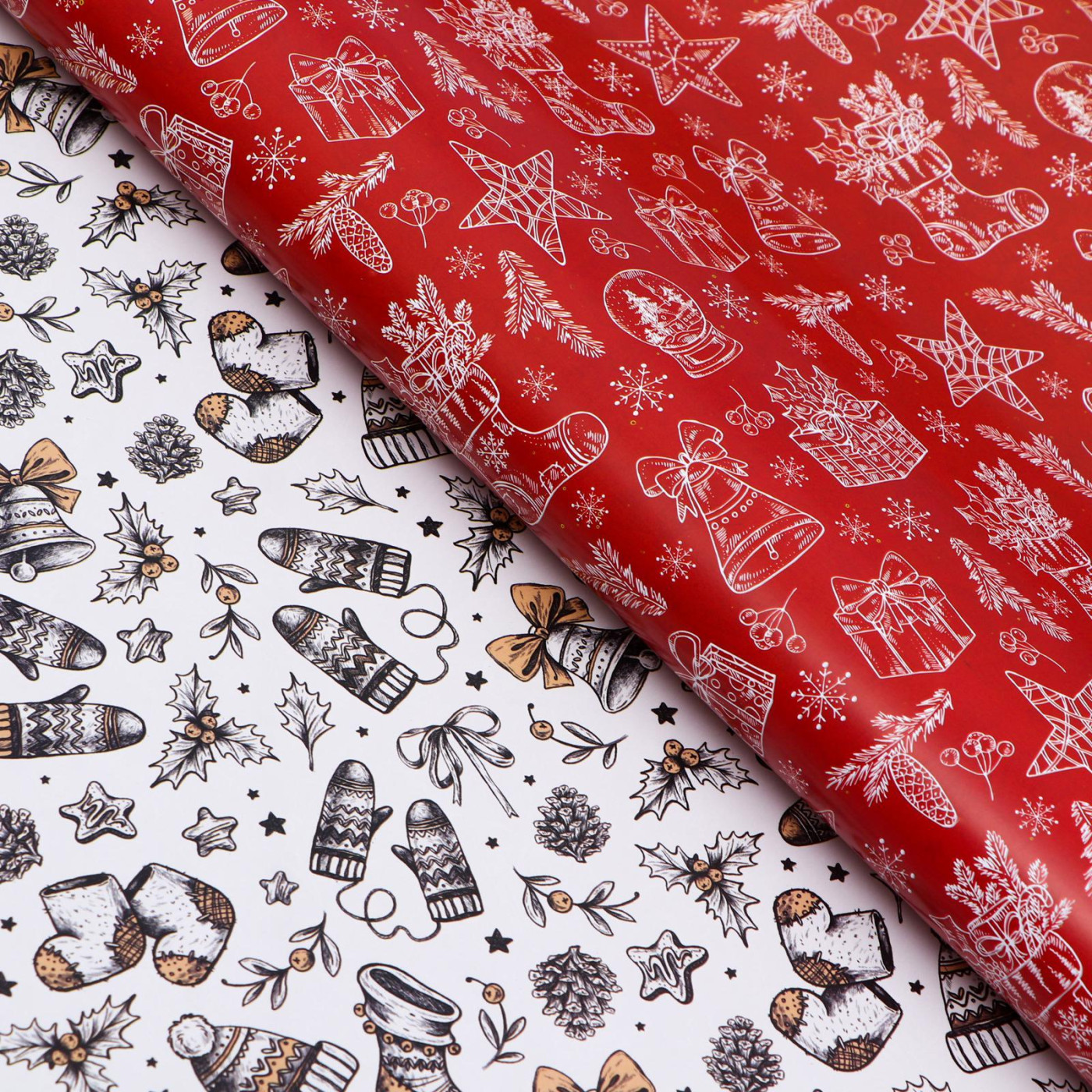 Бумага упаковочная для подарков двухсторонняя "Новогоднее настроение!" 1 лист 50см*70см Белый/красный