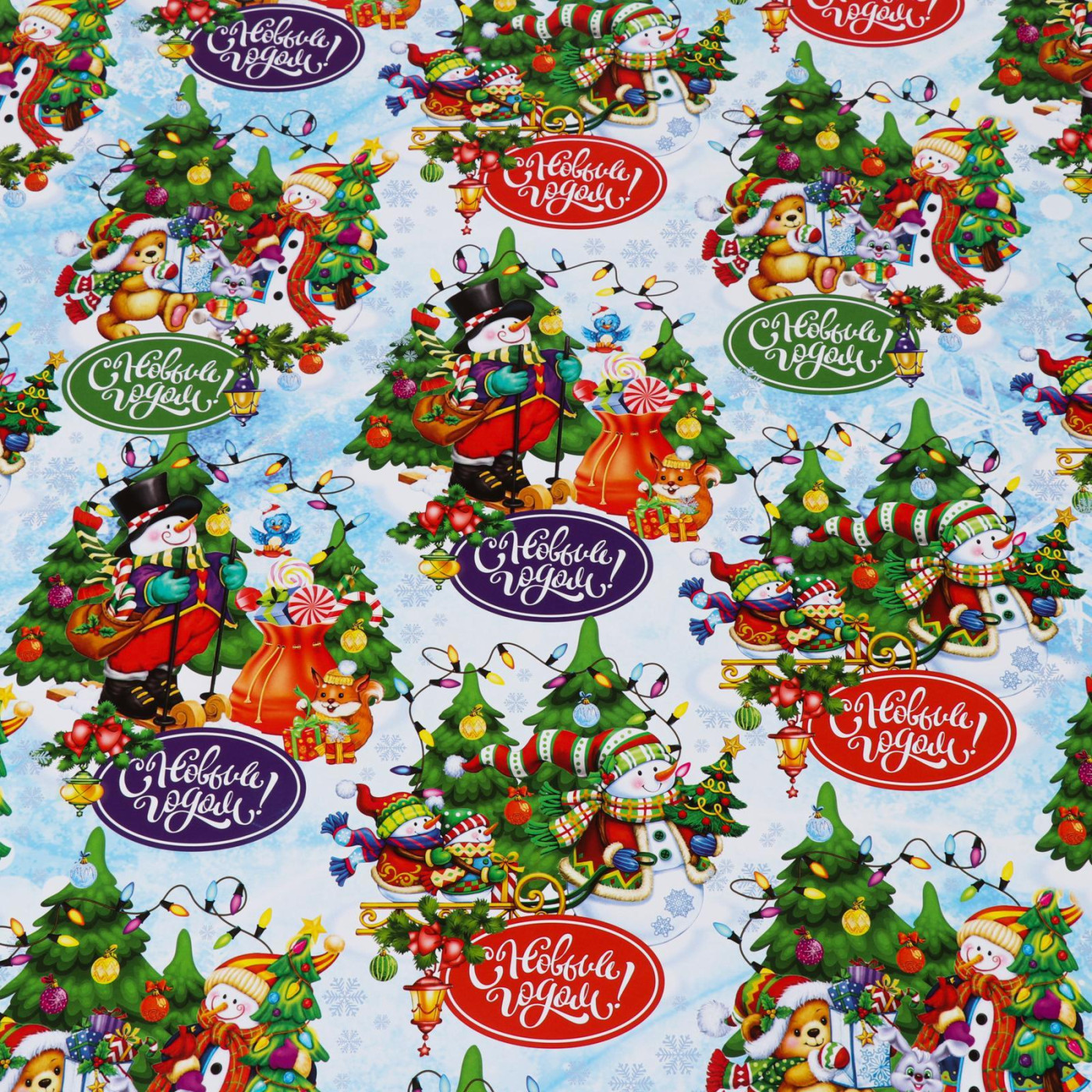 Бумага упаковочная для подарков двусторонняя "С Новым Годом. Снеговики" 1 лист 70см*100см, Голубой