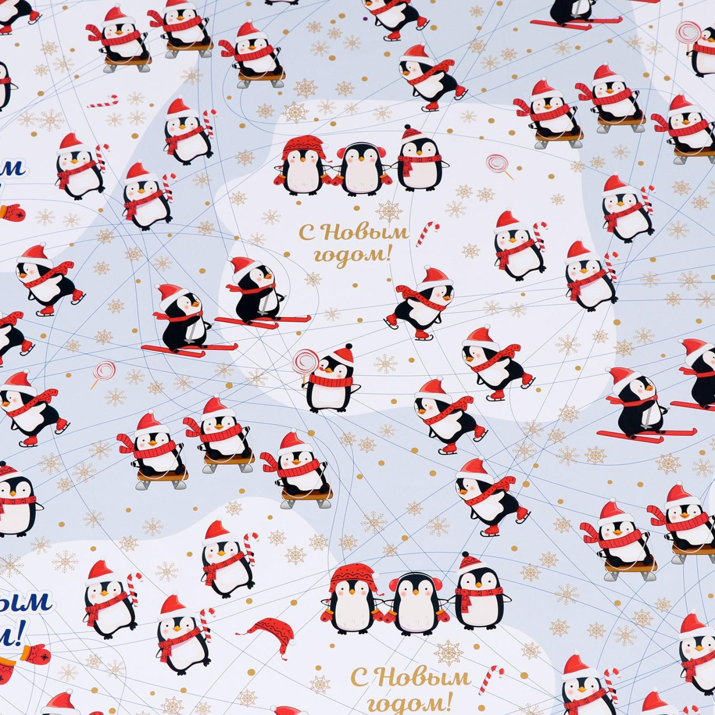 Бумага упаковочная для подарков "С Новым годом!", пингвины, 1 лист 70см*100см
