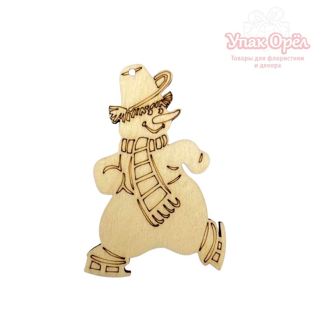 Фигурка из фанеры "Снеговик" (На коньках), 6,5*6см, 1 штука