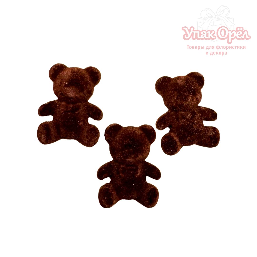 Фигурка пластик "Мишка бархатный", 22*27мм, Коричневый/бежевый, 1 штука