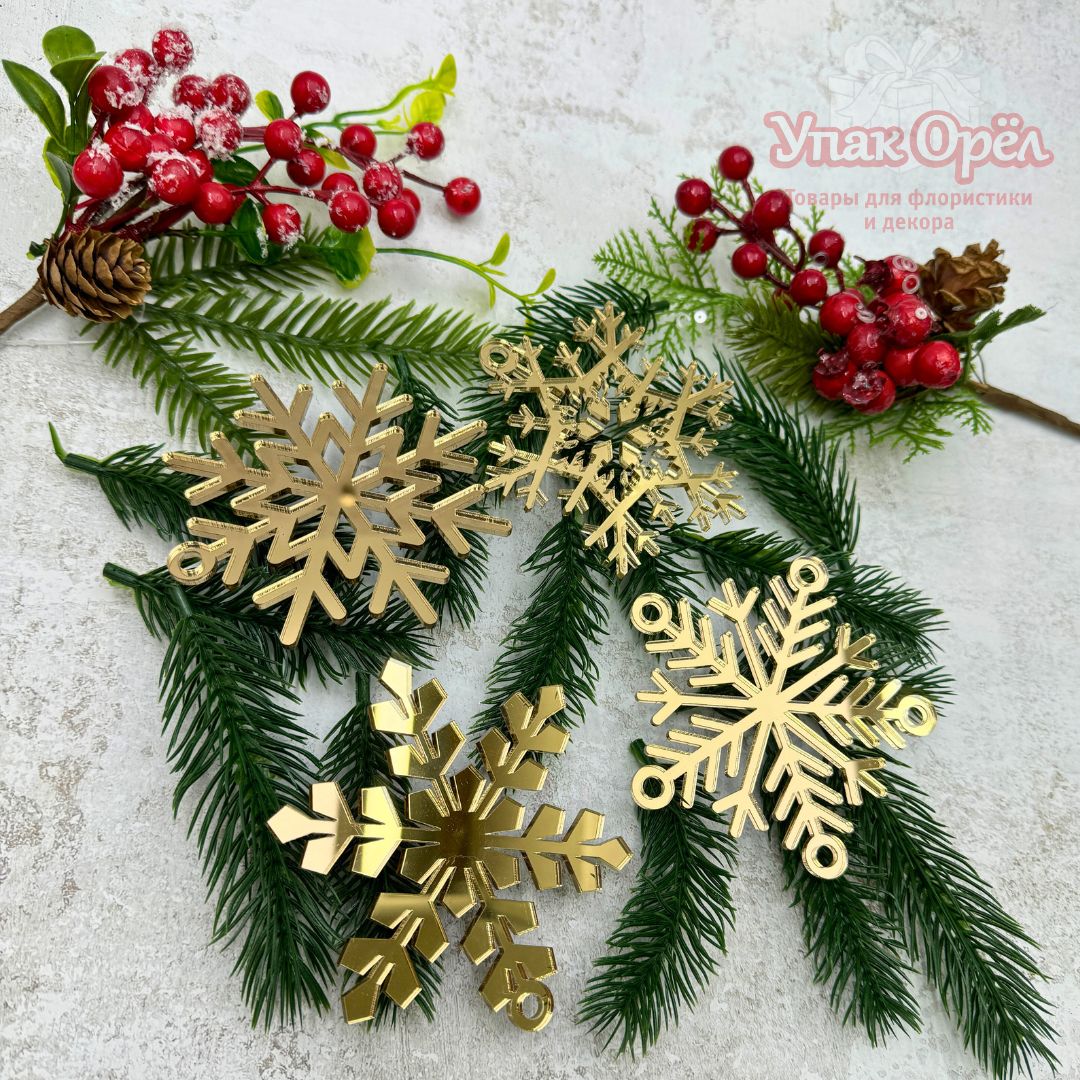 Фигурка «Снежинка», акрил 3мм, зеркальное золото, 10 см, дизайн 1