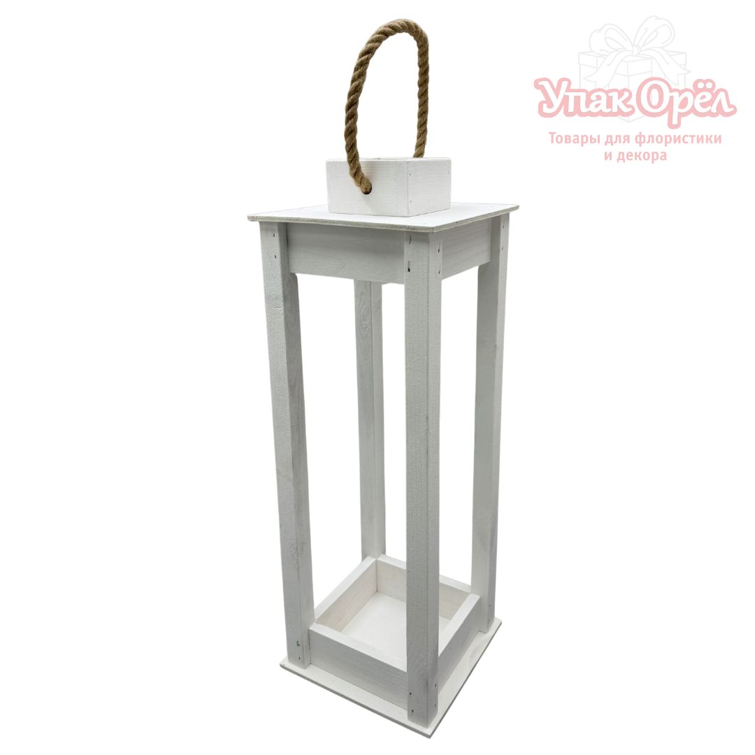 Фонарь Большой, дерево, 45*15,5*15,5см, Белый, 1 штука