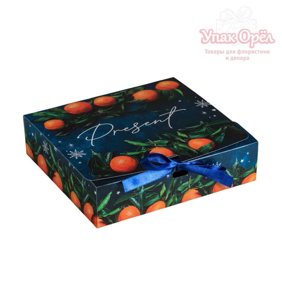 Коробка подарочная с лентой «Present», мандарины, 20*18*5см, Синий