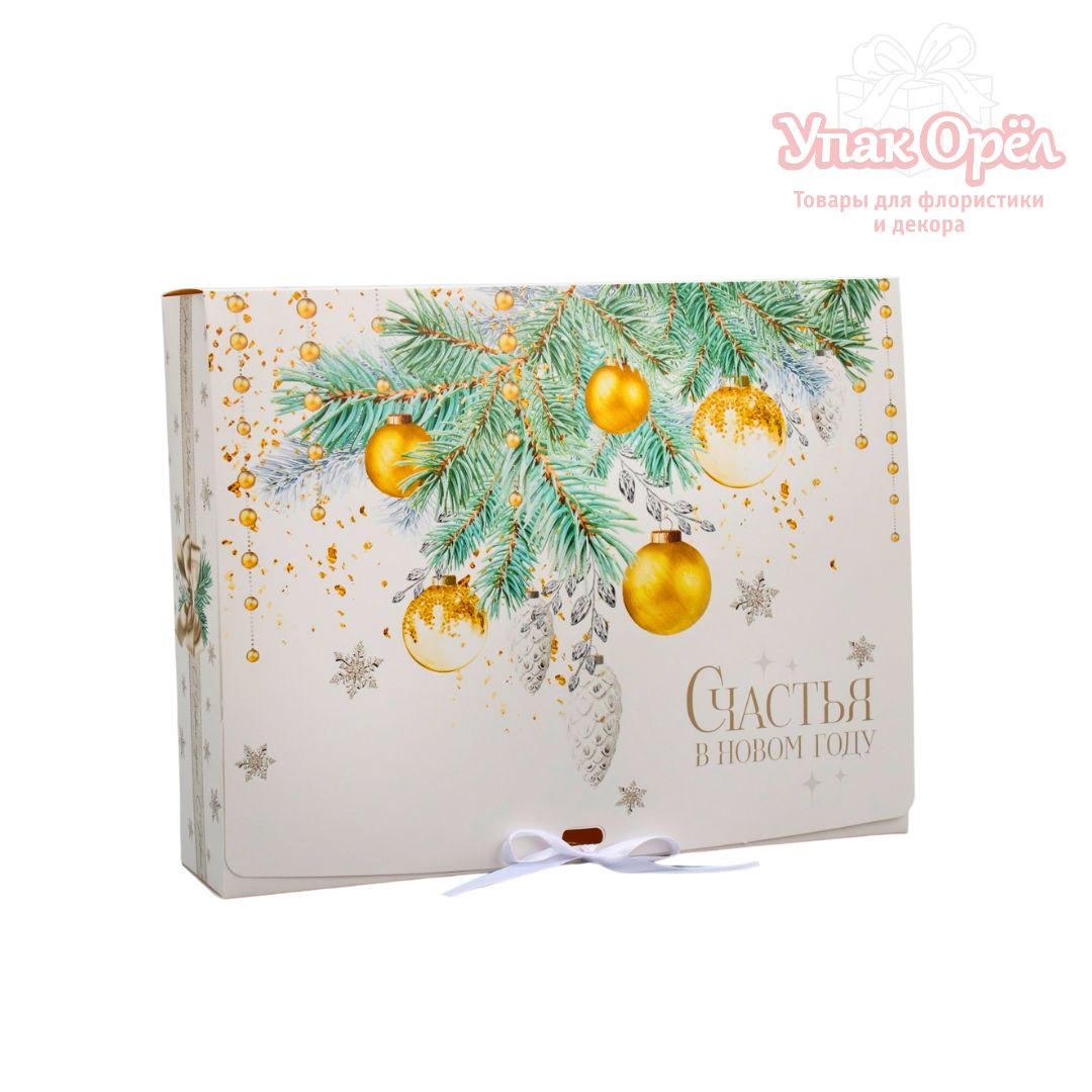 Коробка подарочная с лентой «Счастья в Новом году», 30*24,5*9см, Белый/золото