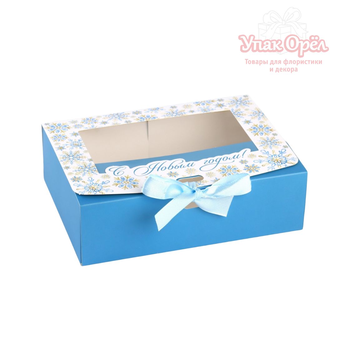 Коробка подарочная с лентой «Снежинки», 16,5*12,5*5см, Бело-голубой