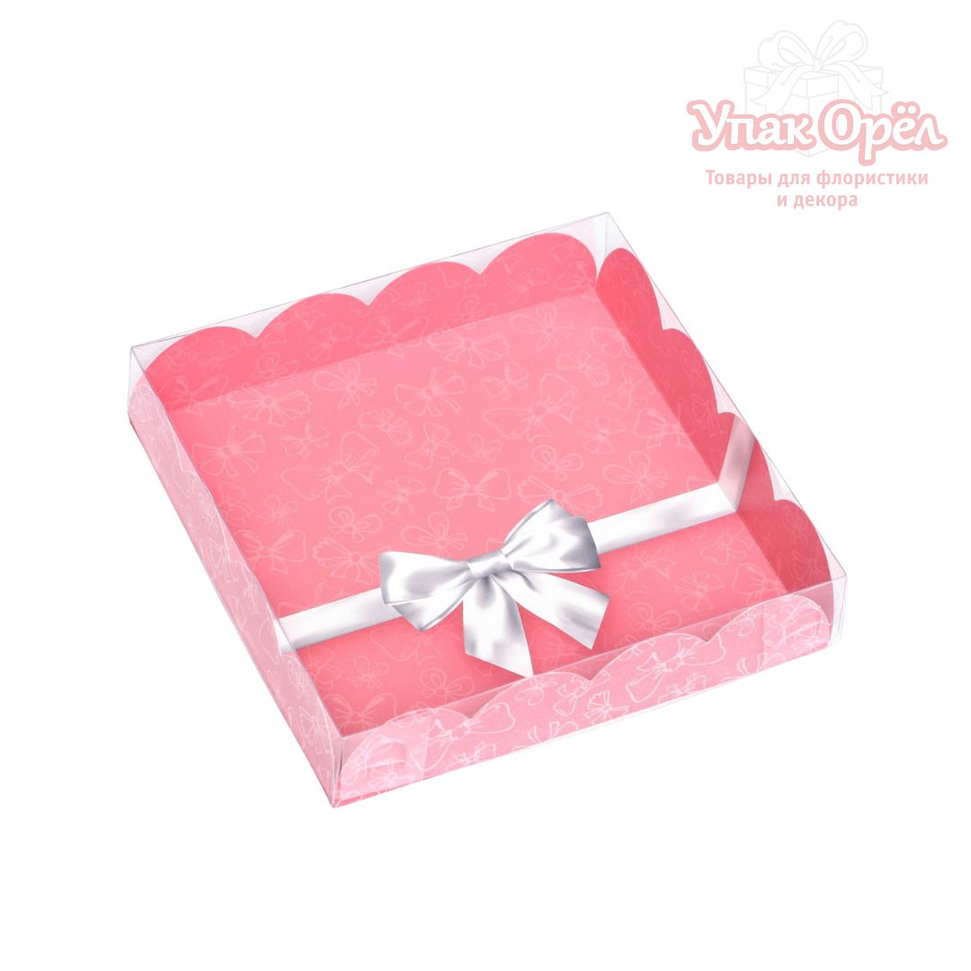 Коробка с прозрачной крышкой, 15*15*3 см Серебристый бант