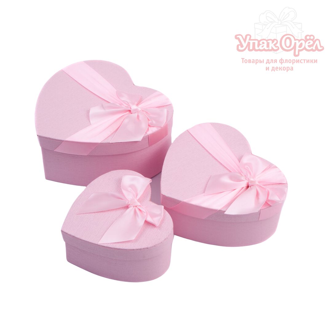 Коробка Сердце с бантом, Розовый, 3 размера на выбор