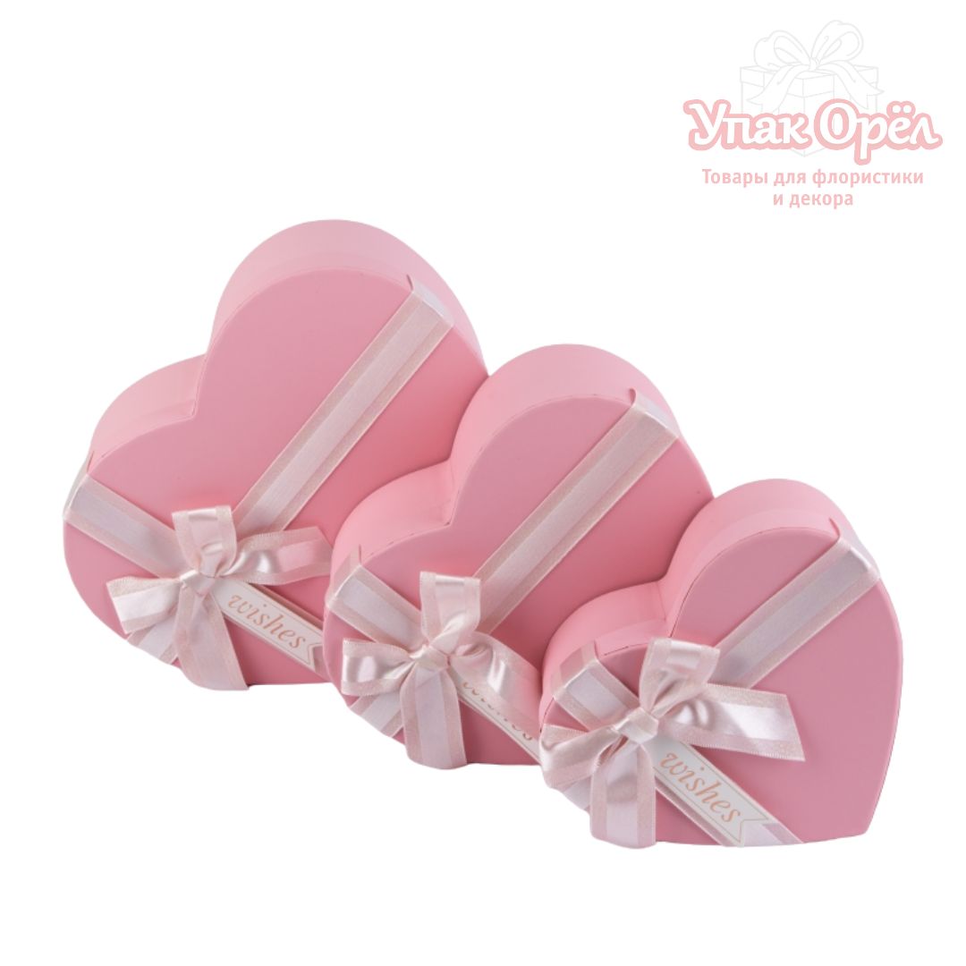 Коробка Сердце, Розовая с бежевым бантом, на выбор 3 размера
