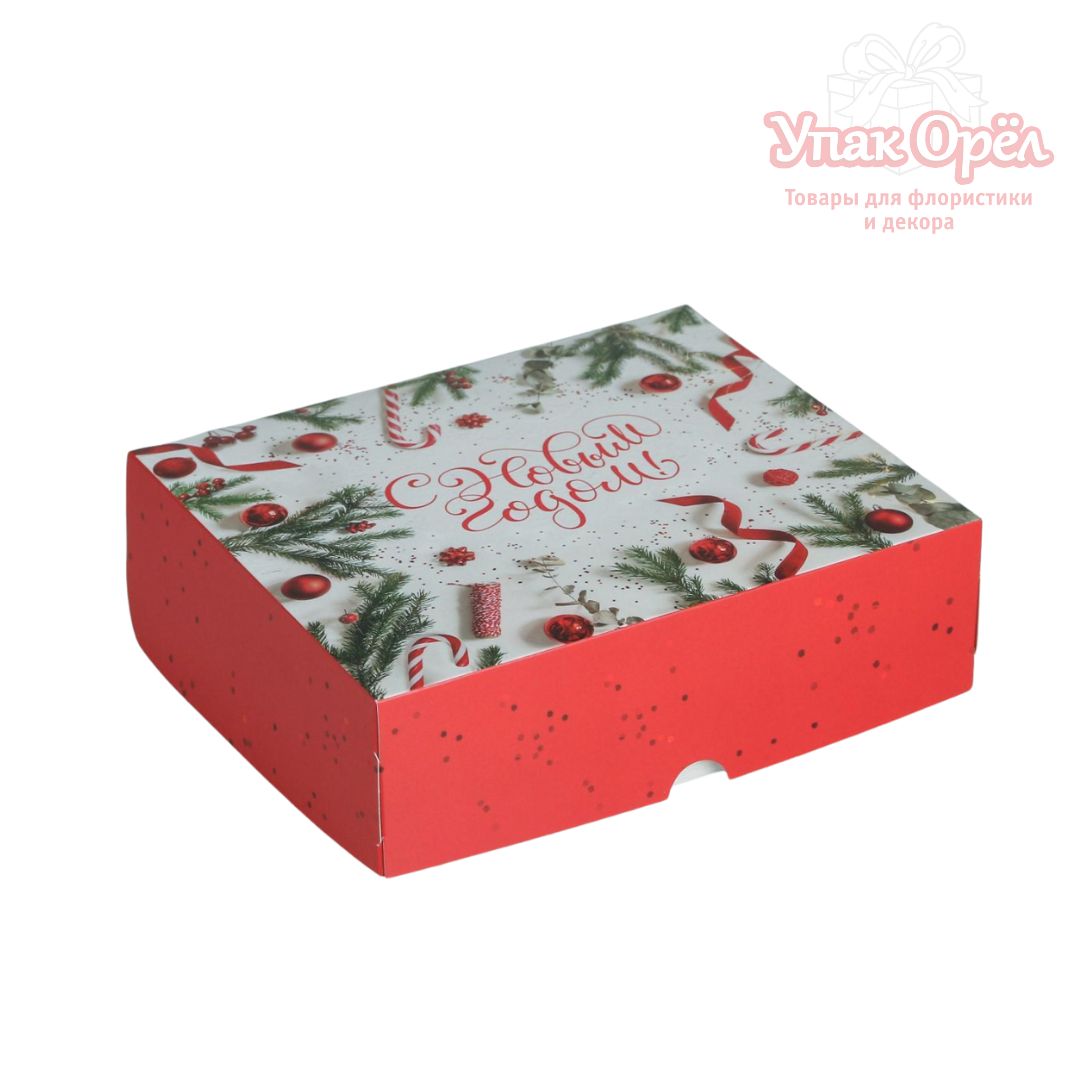 Коробка складная "С Новым годом», 20*17*6см, Красный/белый