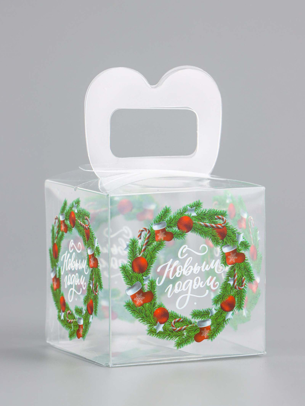 Коробка складная "С Новым годом", 5*5*5см, Прозрачный