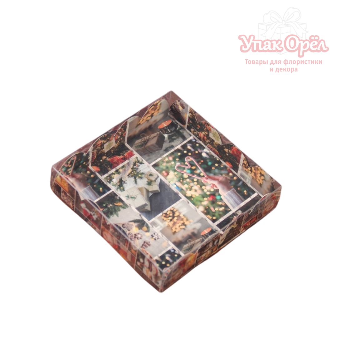 Коробка складная с PVC крышкой "Новогодние фото", 12*12*3см