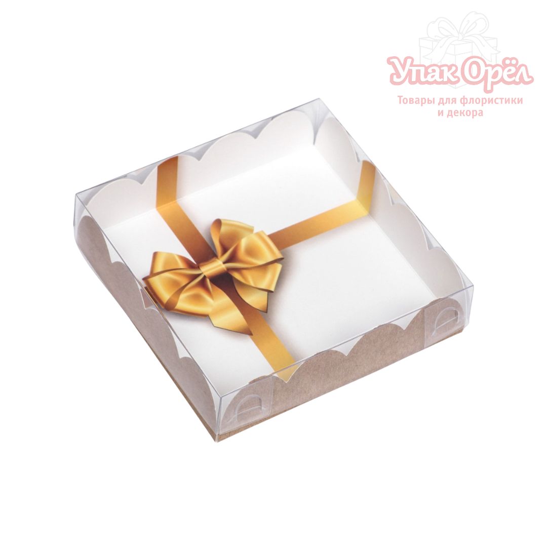 Коробочка для печенья с ПВХ крышкой «Золотой бант» на белом, 12*12*3 см