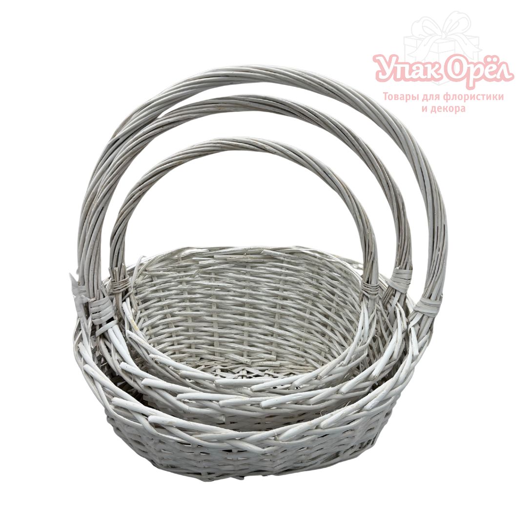Корзина Ива Овал скошенный край 43*33см Н=10/19/54см Белый