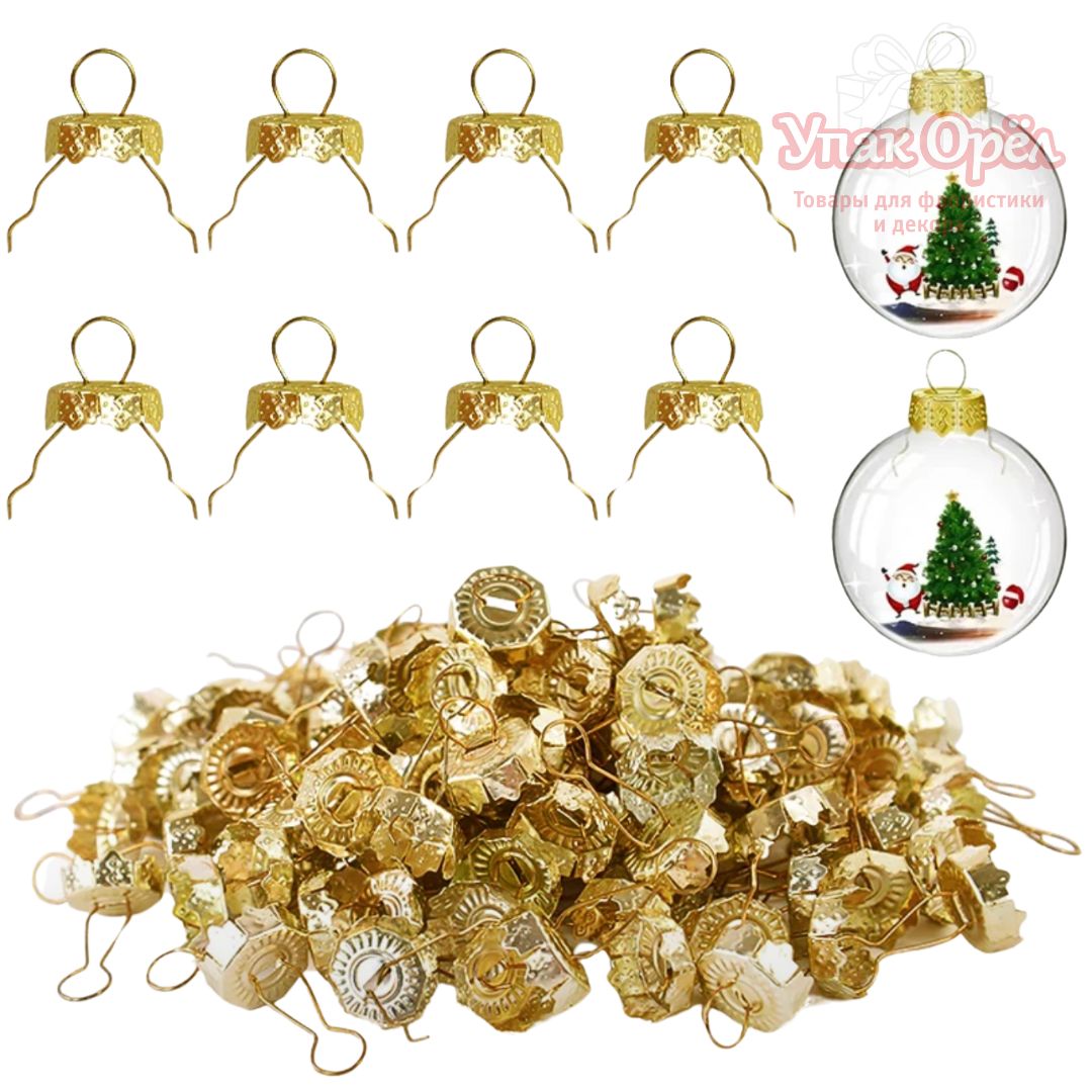 Крепление Колпачок для елочной игрушки, пластик, Золото, 13*11мм, 1 штука