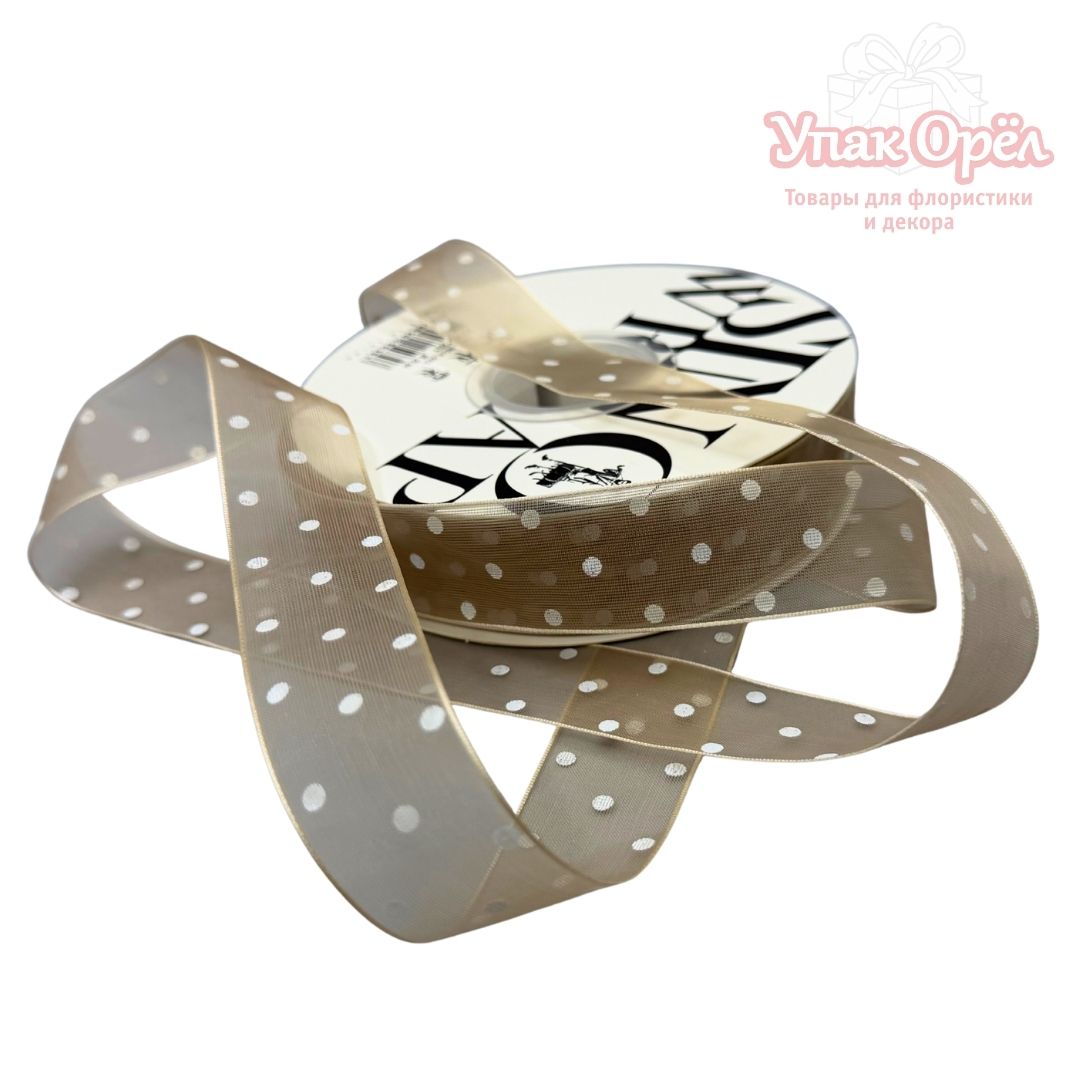 Лента Органза "Горошек" 2,5 см*30 ярд Бежевый/белый