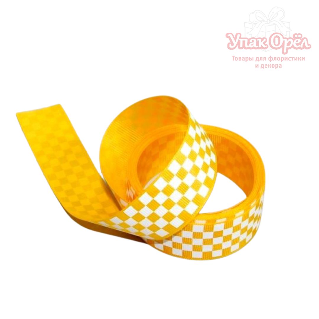 Лента с рисунком репсовая "Белые шашки на жёлтом" 2,5см*3м
