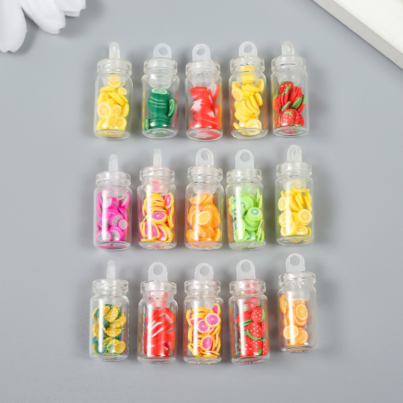 Мини Бутылочка с фруктами (стекло, пластик) 3,1*1,1*1,1см, 1 штука