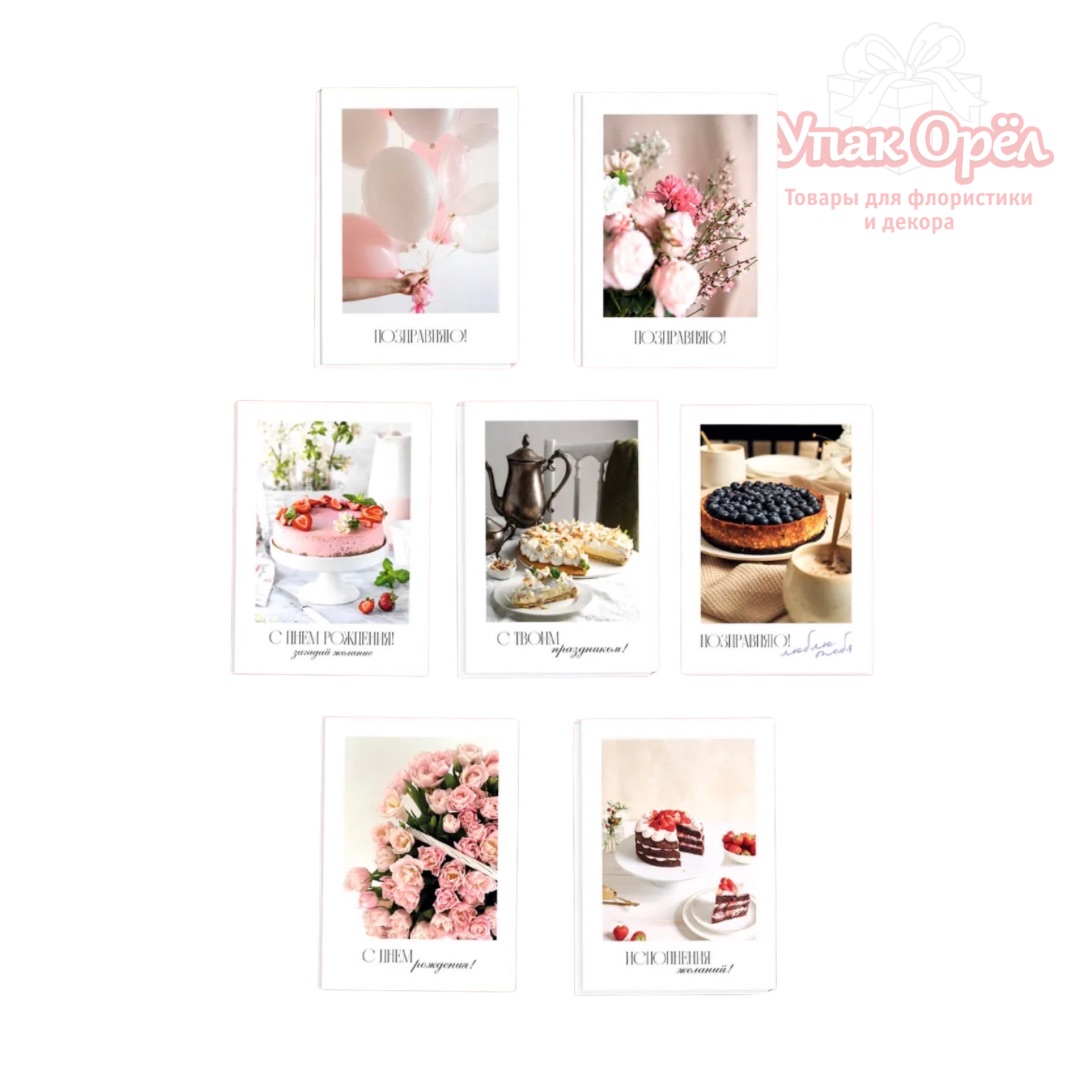 Расскажите о своих чувствах дорогому для вас человеку, поделитесь радостью с близкими и друзьями. Нежные, стильные, красивые, идеальные по размеру открытки для праздника, сделают упаковку подарка запоминающейся. На оборотной стороне можно добавить надпись с пожеланиями. Если вы занимаетесь продажами, то уделить внимание вашим покупателям можно с помощью мини открытки. Просто вложите открытку в заказ и получайте больше улыбок и обратной связи от ваших покупателей.
