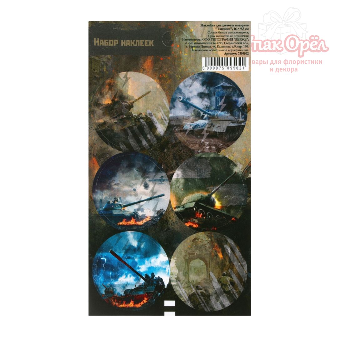 Наклейки «Танчики» 4см, 6 штук, 7509502, 1 лист