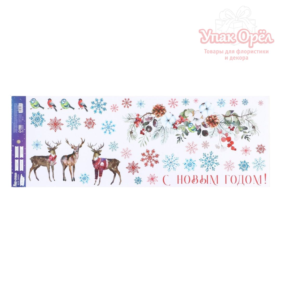 Наклейки для окон "С новым годом" олени, 25*70см, 1 лист