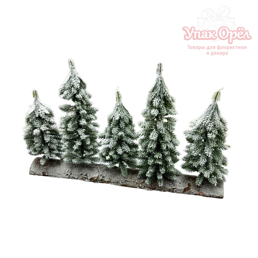 НГ Елки заснеженнве на пеньке, 5 штук, 25*40см