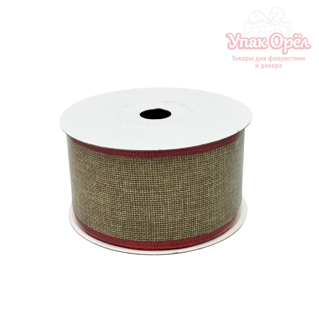 НГ Лента новогодняя 6,3см*10ярд, Натуральный/красный