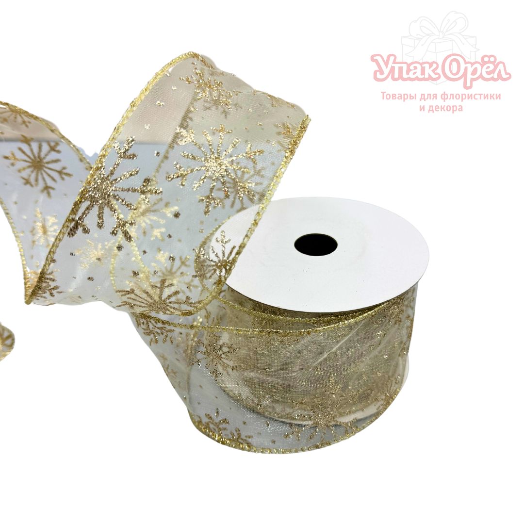 НГ Лента новогодняя Органза с рисунком 6,3см*10ярд, Шампань