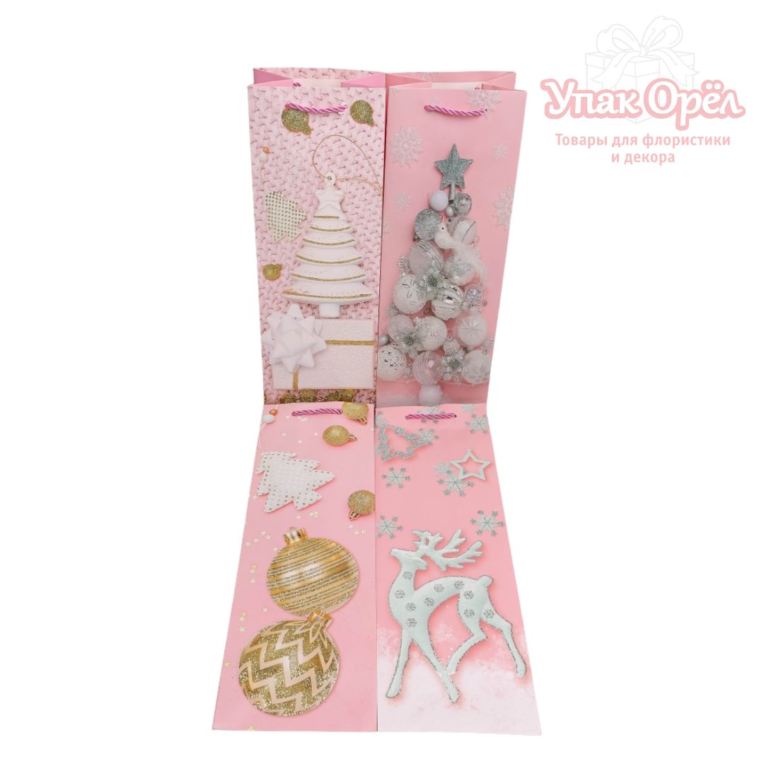 НГ Пакет ламинированный под бутылку "Новый год", 35*9*12см, 1 штука, Розовый Микс