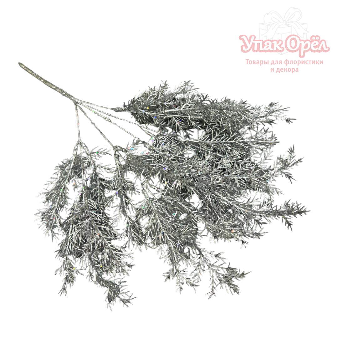 НГ Ветка елки глиттер, 37см, Серебро