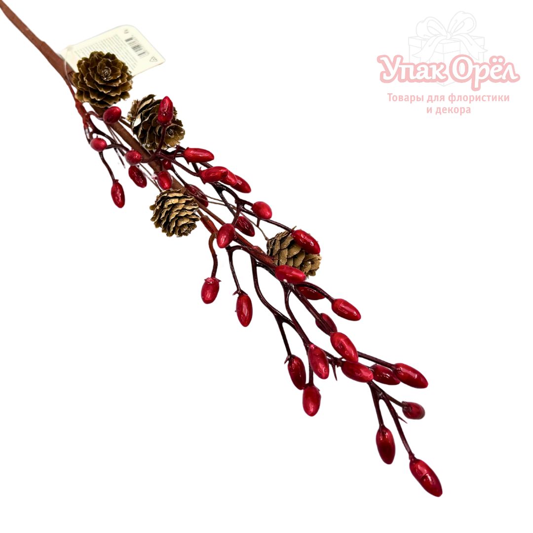 НГ Ветка с елкой и красными ягодами, 42 см