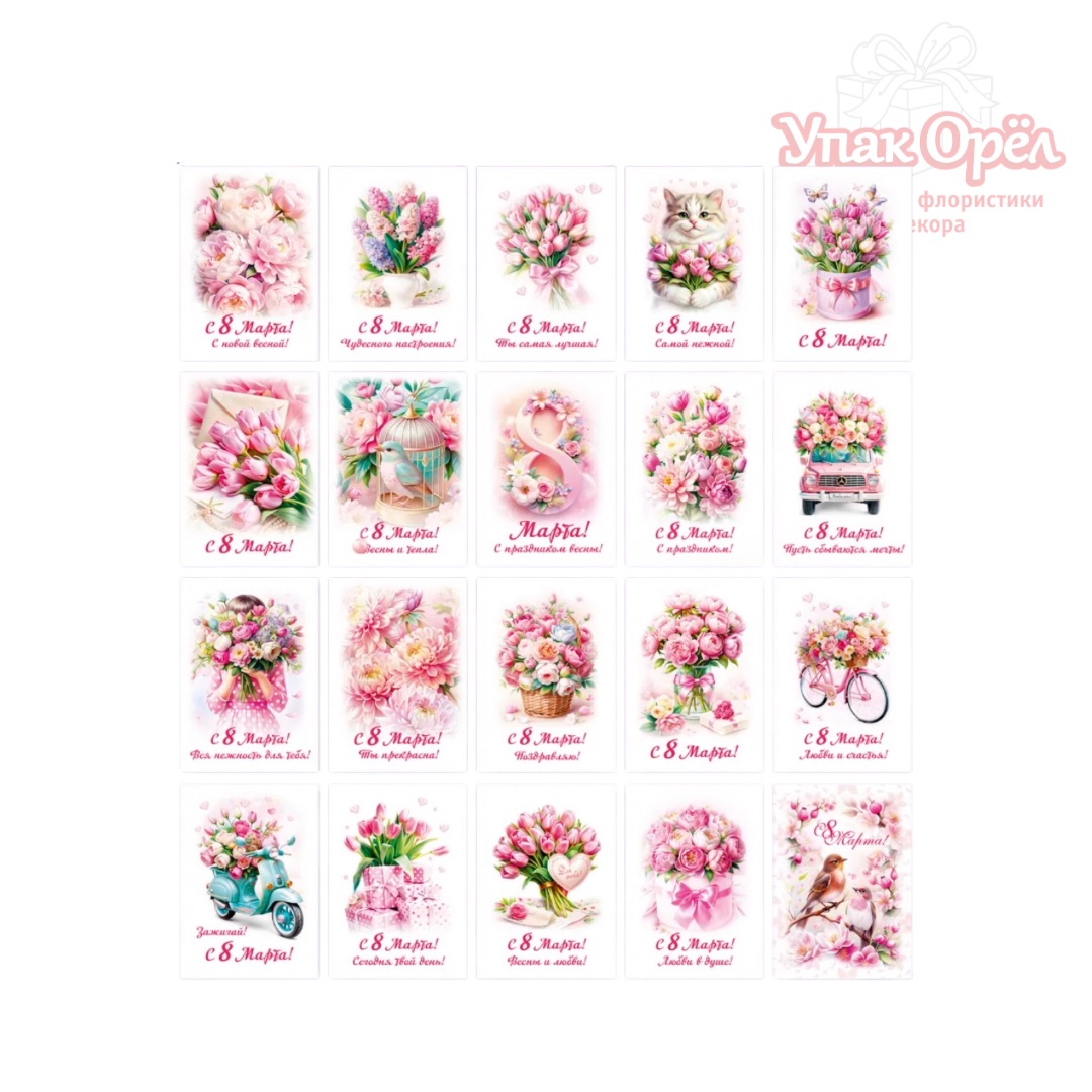 Открытка "8 марта", 7*10 см, Микс 5, 1 штука