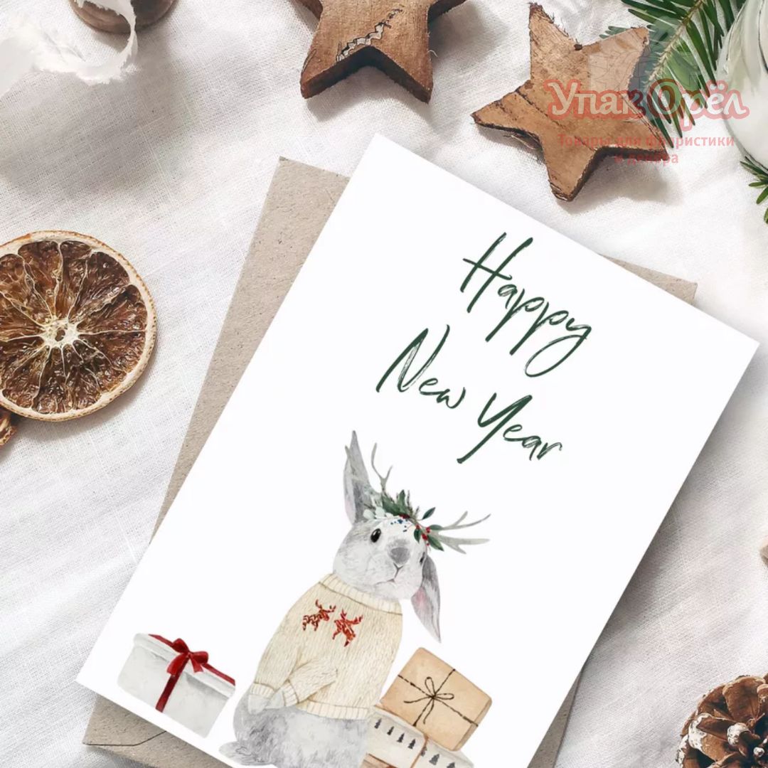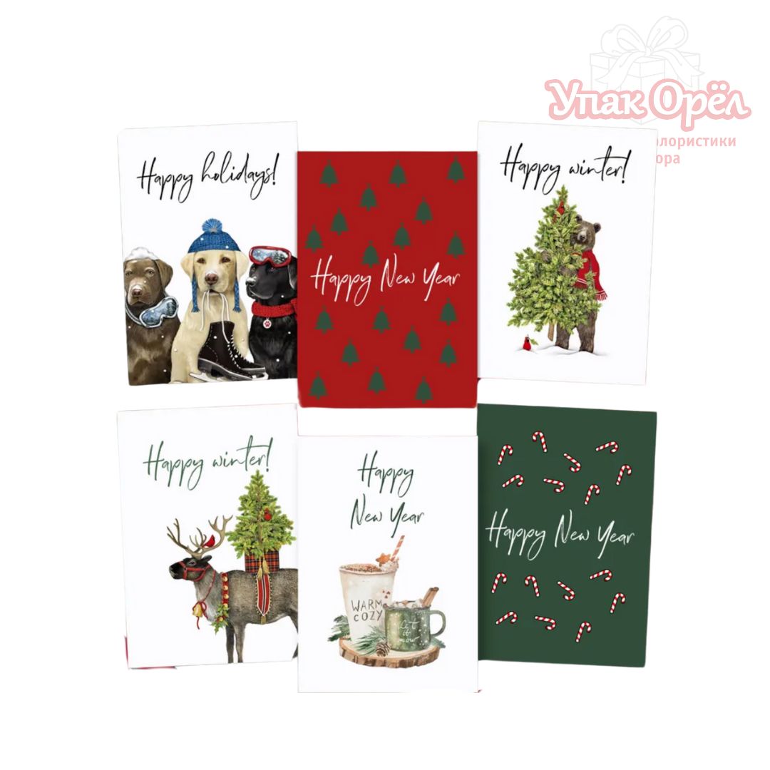 Открытка "New Year" , 7*10см, 1 штука, Микс