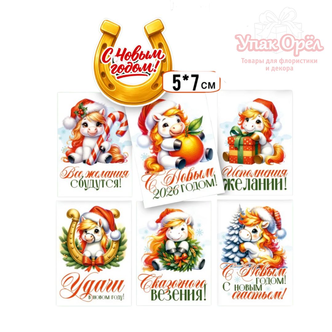Открытка "С НГ" Кони, 5*7см, 1 штука,