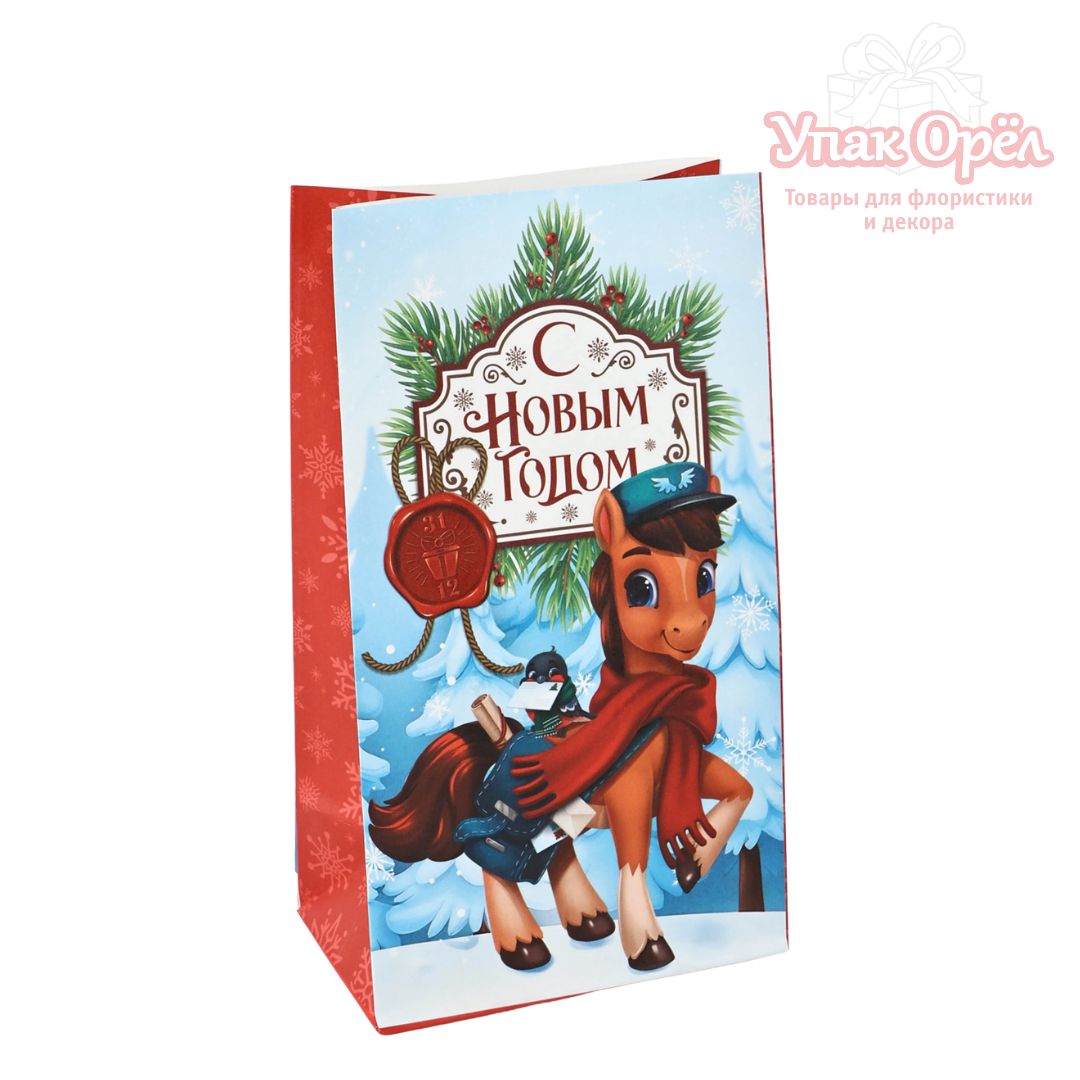 НГ Пакет крафт без ручек 10*19,5*7см «С Новым 2026 г. Лошадка», 1 штука