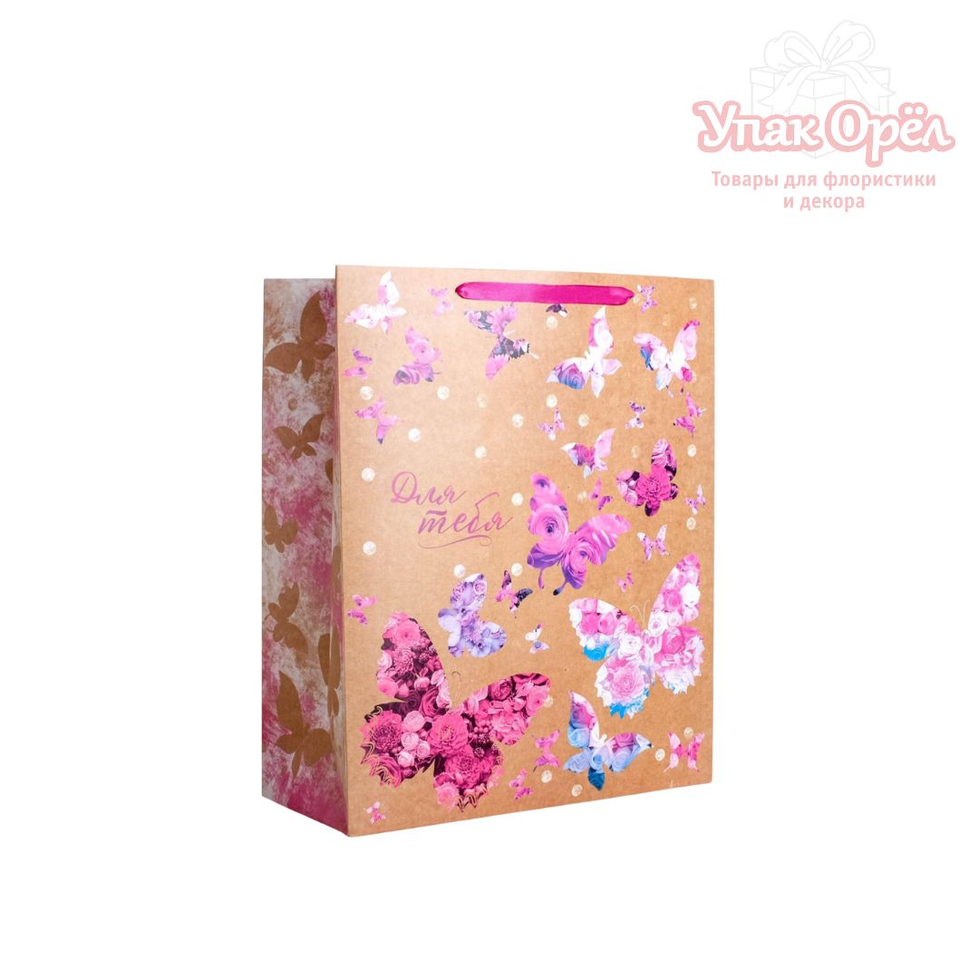 Пакет ламинированный «Для тебя» бабочки, 49*40*19см, Крафтовый, 1 штука