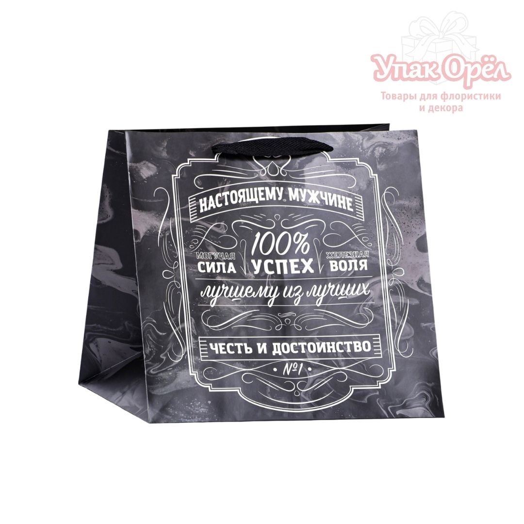 Пакет ламинированный "Настоящему мужчине", 30*30*30см, Черный, 1 штука
