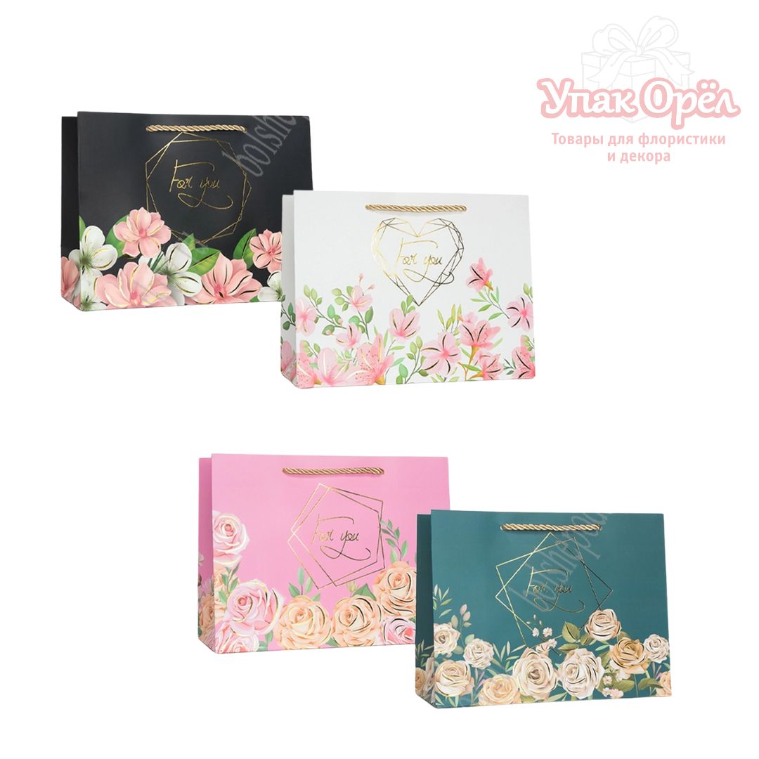 Пакет ламинированный с лентой "For you", 23*17*10см, Микс, 1 штука
