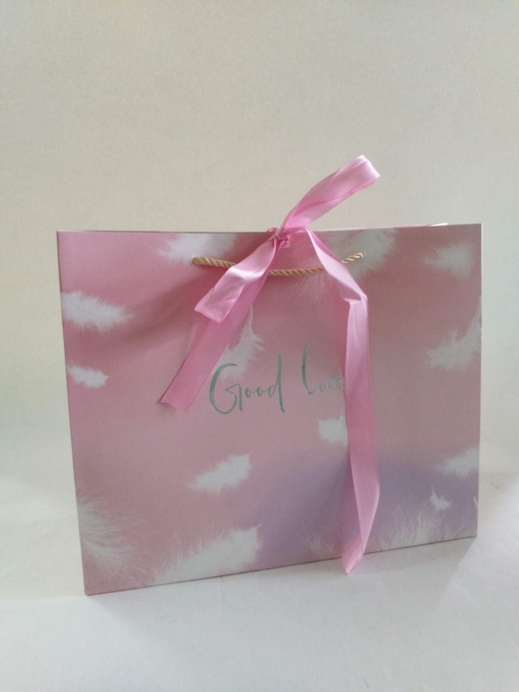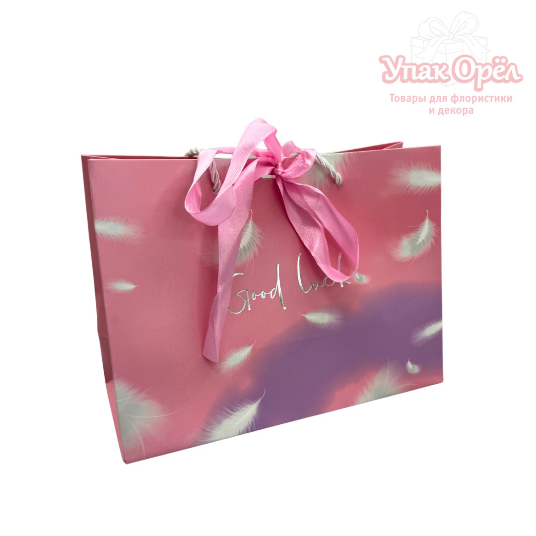 Пакет ламинированный с лентой "Good luck", 18*23*10см, 1 штука, Розовый