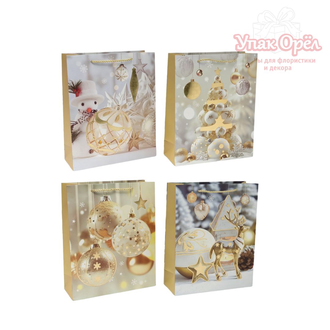Пакет подарочный с блестками "Новогодний" золото, 18*23*10см, Микс, 1 штука