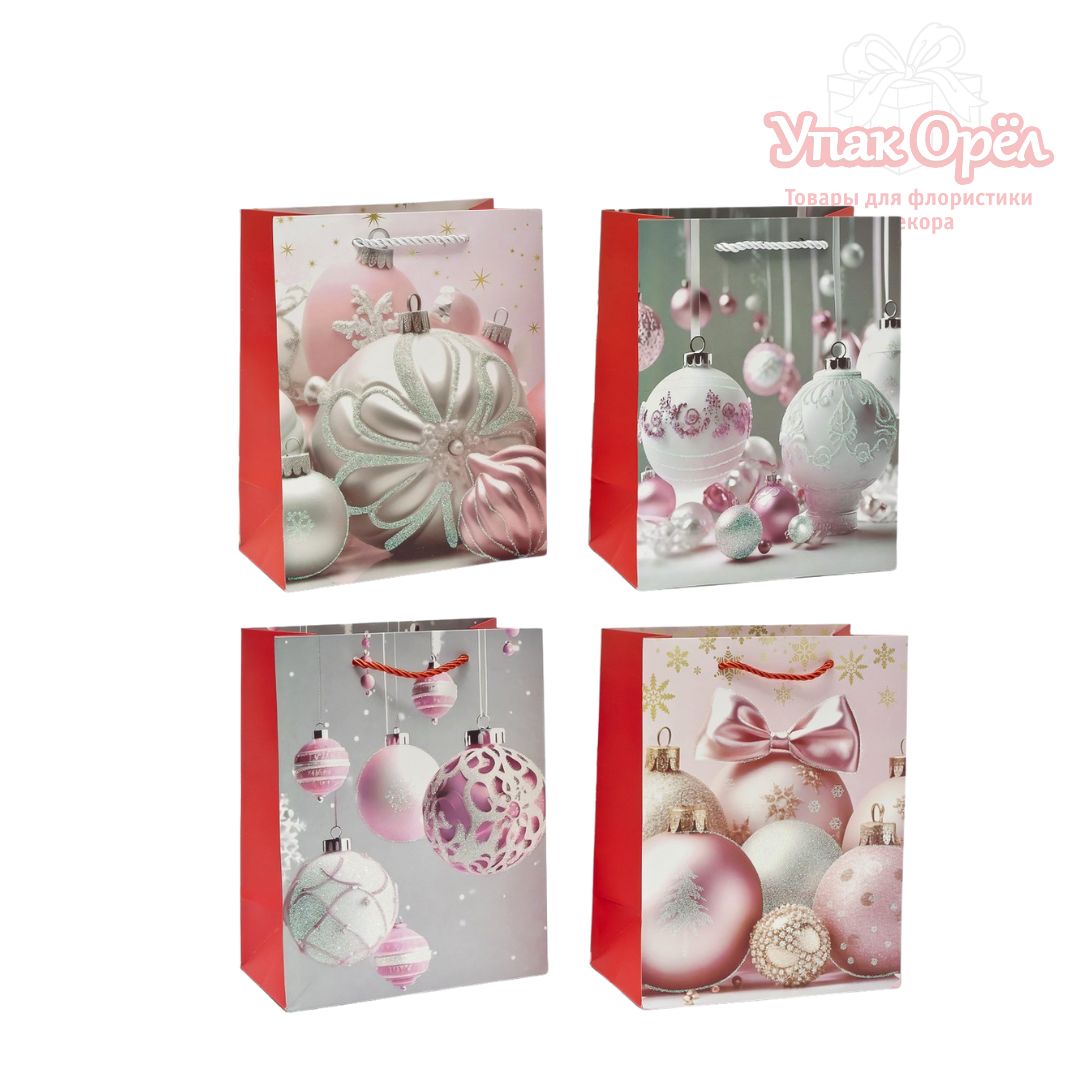 Пакет подарочный с блестками "Шары", 30*41,5*12см, Микс, 1 штука