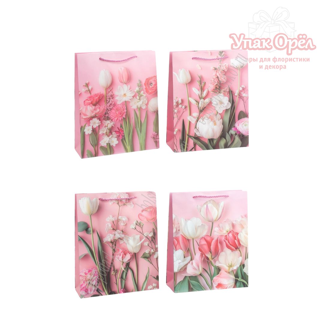 Пакет подарочный "Цветы" 26*32*10см, Микс, Розовый, 1 штука