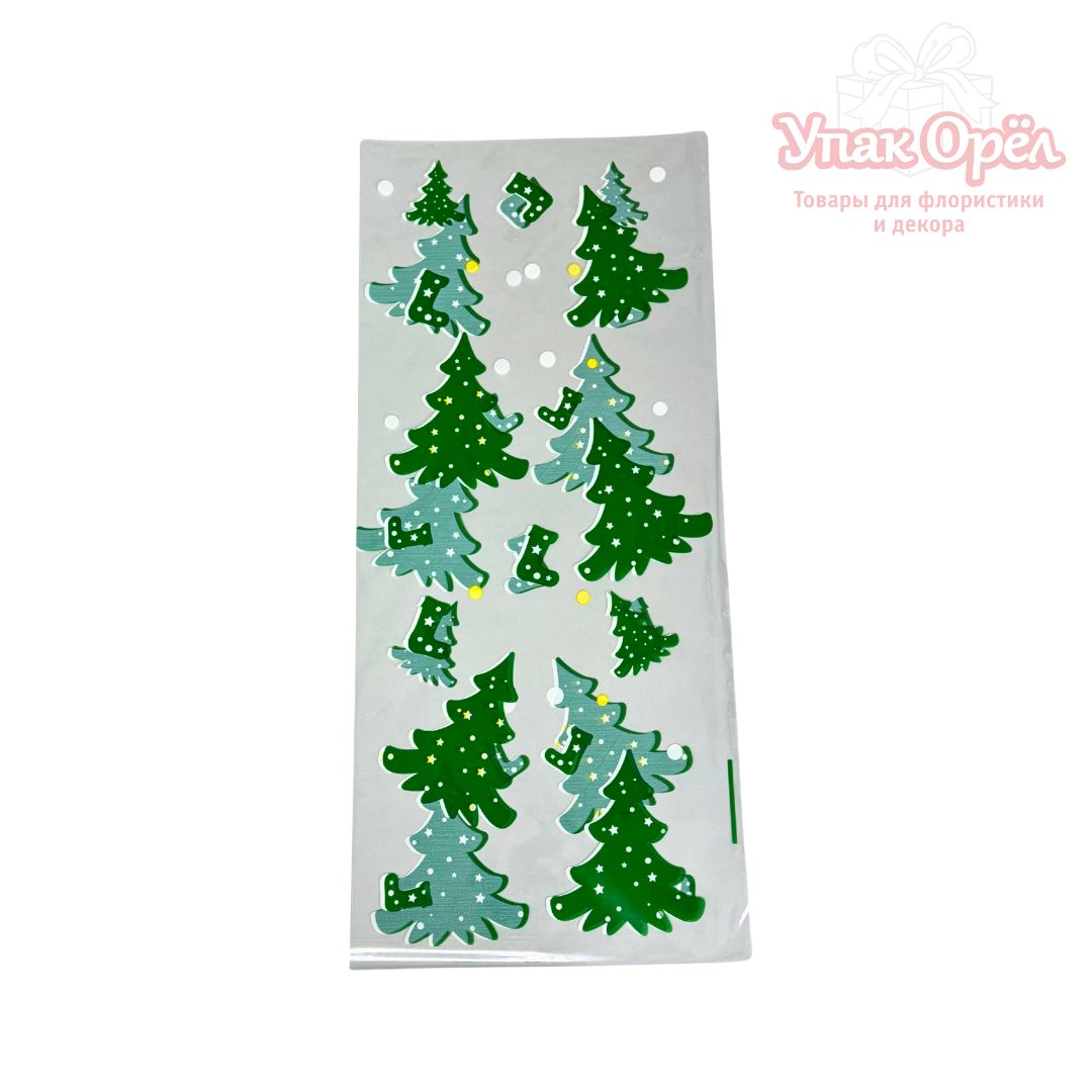 НГ Пакет полиэтилен прозрачный с рисунком "Елки", 13*27см, Зеленый